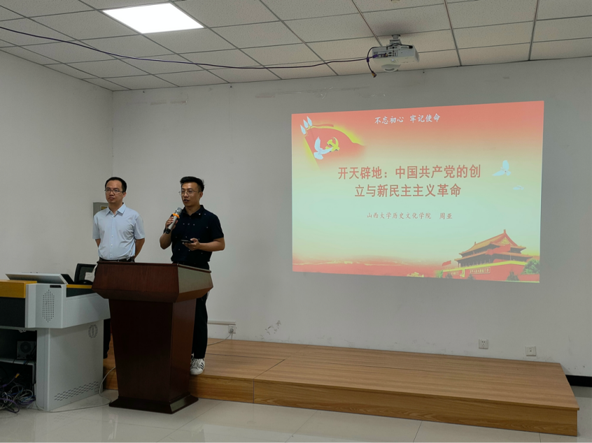 “学史知来,初心如磐”,为庆祝中国共产党成立100周年,深入学习贯彻习近平总书记在党史学习教育动员大会的重要讲话精神,在“学党史、悟思想”中不断唤醒红色基因、坚定理想信念,2021年6月2日,EMC易倍特邀EMC易倍官方网站历史文化公司教授、博士生导师、EMC易倍官方网站民间文献整理与研究中心执行主任、山西省中共党史人物研究会副会长周亚在EMC易倍大会议室作题为《开天辟地:中国共产党的创立与新民主主义革命》的专题讲座。EMC易倍研究生第二党支部书记郝强老师主持讲座,EMC易倍本科生和研究生党员、积极分子到场聆听。