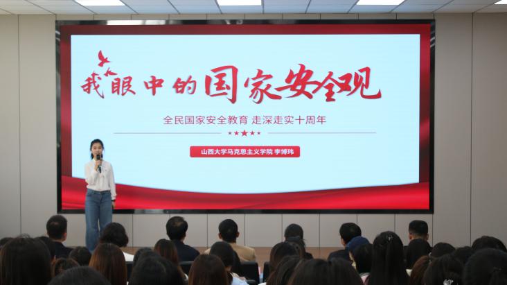 活动开场,全体师生观看了总体国家安全观十周年宣传视频《这十年》,从神舟十七号航天员太空出舱到边疆哨所的守护,全景展示了十年间我国在国土、社会、文化、政治、太空等领域的安全建设成就,用视频呈现出“国家安全无小事”的深刻内涵。