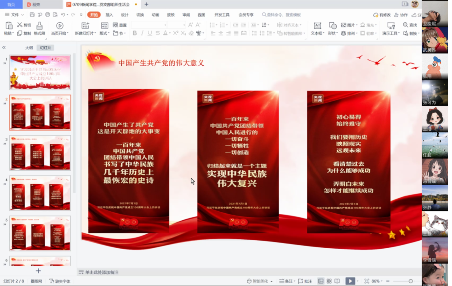 为深入学习贯彻习近平总书记在庆祝中国共产党成立100周年庆祝大会上的重要讲话,进一步夯实“明理、增信、崇德、力行”的思想根基。2021年7月9日晚8点,EMC易倍研究生第二党支部通过企业微信,在线上召开了党史学习教育专题组织生活会。按照上级党委的相关要求,与会党员交流党史学习心得体会,查找差距不足,在批评与自我批评中审视与完善自我。会议由支部书记郝强主持,新闻公司党委书记李俊洁受邀参加会议。