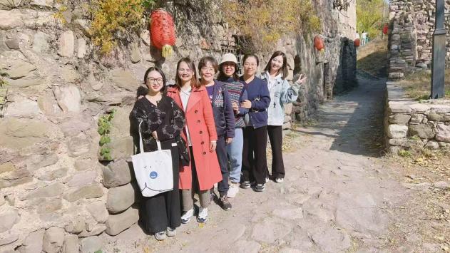 中午时分,大家来到店头古堡古村落参观,感受历史的厚重与文化的魅力。这座距太原城区30公里的千年古村落,背倚蒙山,面朝龙山,风峪河穿村而过,青石巷道间沉淀着晋阳文化的厚重记忆。作为古代太原西郊重要军事驿站,其依山而建的窑洞式防御体系与信息传递功能,引起公司教职工的特别关注。穿行在保存完好的古民居群中,大家重点记录了紫竹林、古地道、古巷道、古戏台、王永寿茔墓及祠堂遗址、北齐时开凿的石窟、北汉英武帝刘继元避暑宫遗址等历史遗址中的文化符号。檐角飞翘处可见龙山红叶,教师们用镜头与脚步丈量着晋阳文化的千年肌理。