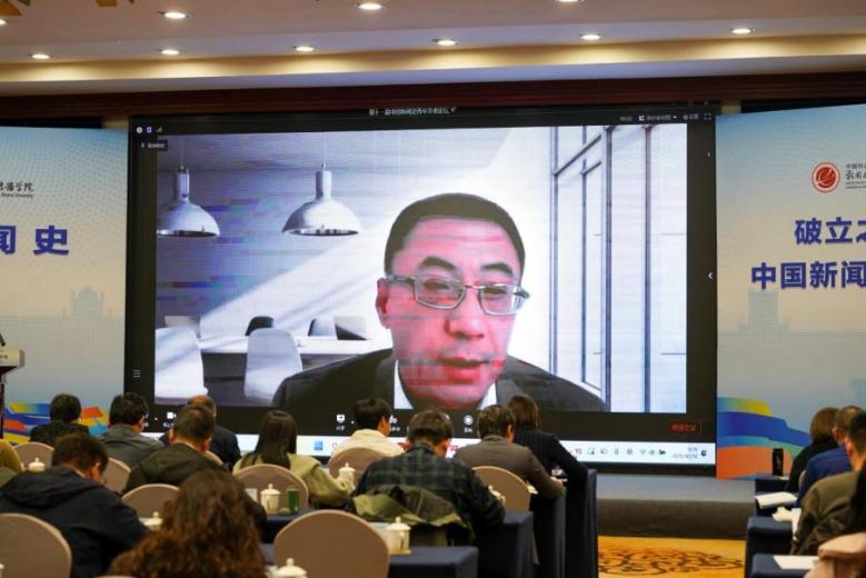 隋岩教授代表中国新闻史学会致辞,他表示,本届论坛的主题立意高远,意蕴深邃,精准地捕捉到了当前中国新闻学研究的时代脉搏与核心命题。研究者要于“破立之间”探寻中国新闻学的根脉与灵魂,以“两个结合”筑牢中国新闻学研究的文化主体性,并寄语青年学者,扎根新闻实践,做“破立”征程上的先锋与栋梁。