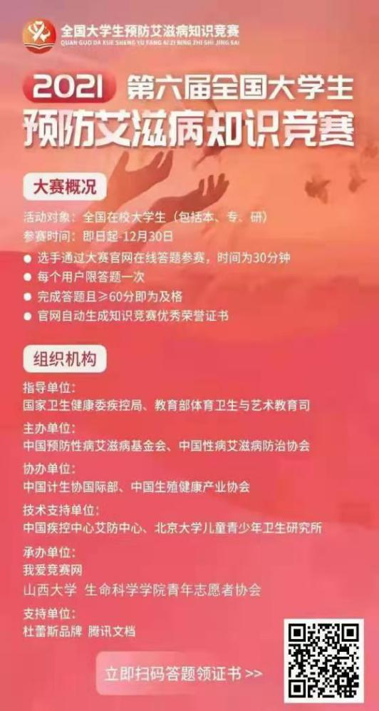 3.开展一次知识竞赛。各公司既可以自行组织线下竞赛,也可以组织员工参加“第六届全国老员工预防艾滋病知识竞赛活动”(详见下图宣传海报),形成线上理论学习和线下宣传实践相结合的活动模式。