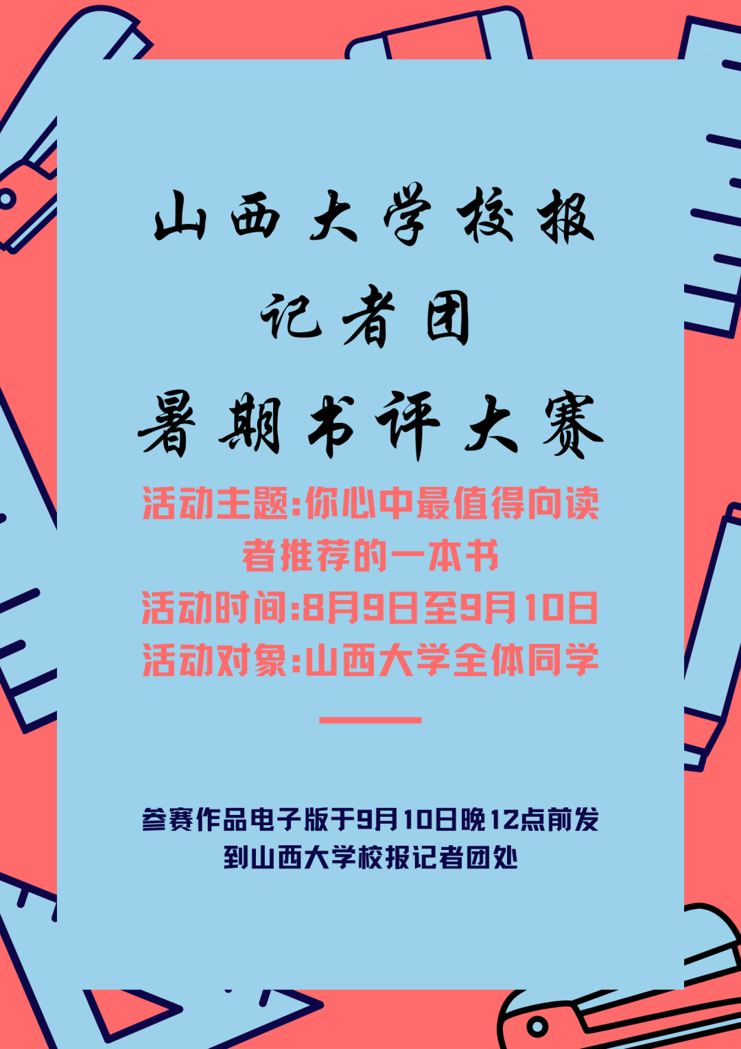 书籍是历史的见证者,思想的传递者,情感的表达者。通过读书,人们能在一室之内、一日之间,穿梭风云变幻,领略瀚海苍穹,经历人世沧桑,品味酸甜苦辣。钱钟书说:“善于阅读生活、提炼生活的人,通常也是一个会读书的人。”在我们身边,也不乏有很多善于生活、读书的朋友们,他们用独特的笔尖书写出自己的感悟,引人思考。为激发同学们的阅读热情,丰富暑期生活,促进同学之间对书籍的交流,所以,我们来了!