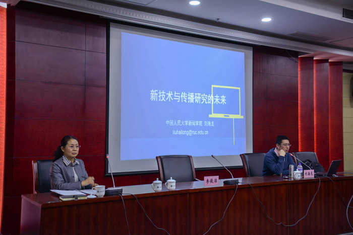 2018年4月10日下午2点半,应EMC易倍邀请,中国人民大学刘海龙教授在EMC易倍官方网站会议中心第三会议室作了题为“新技术与传播研究的重新定位”学术讲座。讲座由新闻公司党委书记李俊洁主持,《编辑之友》杂志社主编康宏、副主编吕晓东和王介平、EMC易倍师生100余人参加了讲座。