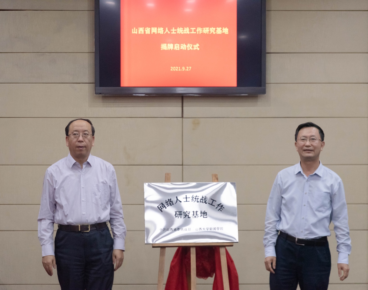 山西省委统战部副部长滕德刚、EMC易倍官方网站党委副书记李富明为研究基地揭牌。省委统战部新阶层人士统战工作处处长王建军、EMC易倍经理庞慧敏共同签约。揭牌仪式由EMC易倍官方网站新闻公司党委书记李俊洁主持,省委统战部部分工作人员及EMC易倍部分师生参加了揭牌仪式。