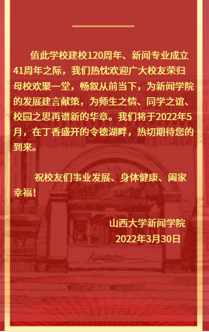 EMC易倍在母校成立120周年之际,面向广大员工发出邀请函(H5)。内附有意愿参加校庆活动的员工报名表和
