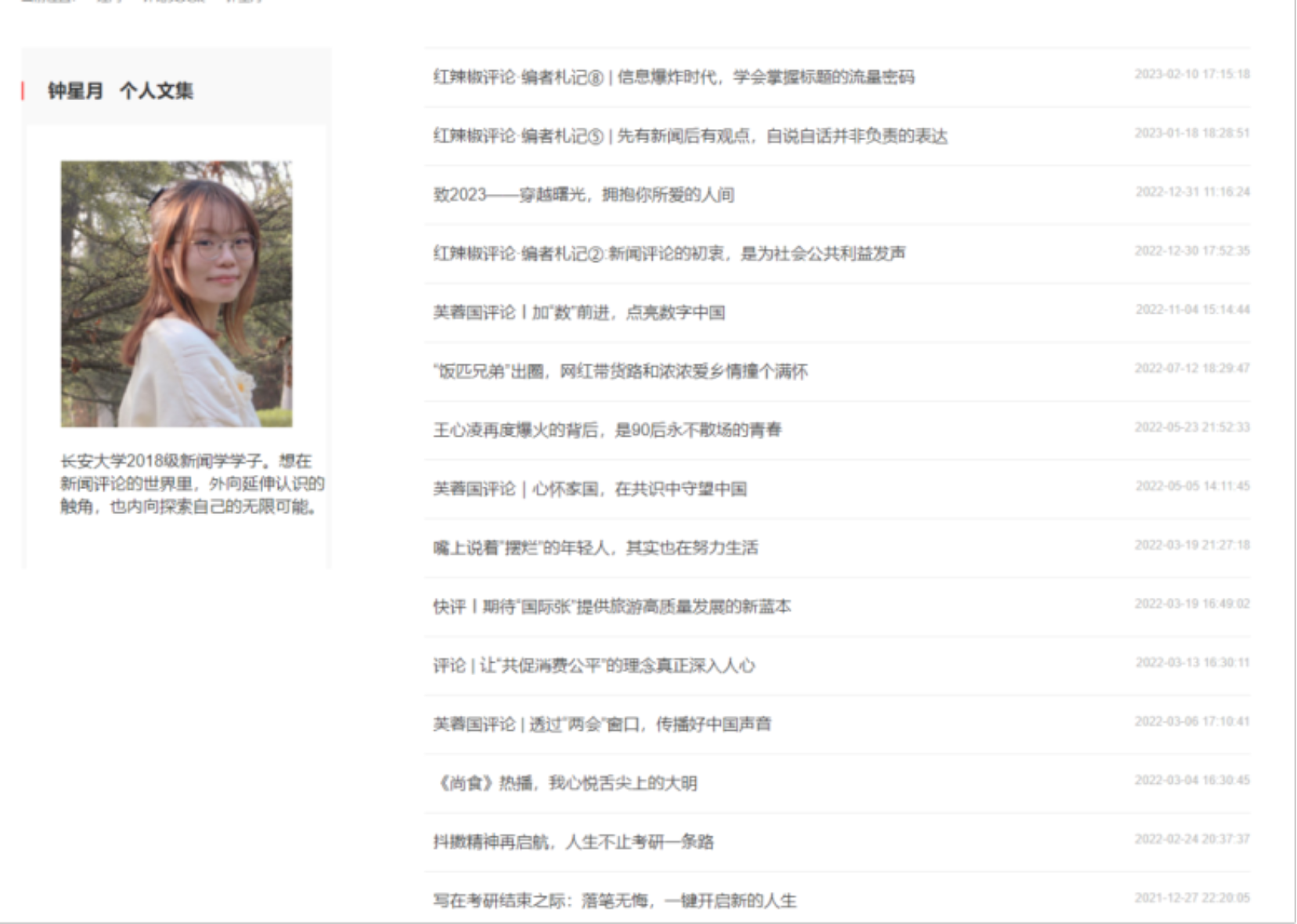 这次访谈经历,让我感受到了钟星月老师对评论写作一以贯之的热爱和严谨规范的态度。她“用理性思考的结晶来启发大众,温暖世界”的观点,激励着我们每一位青年应有所思、有所行,在正确的价值观的引导下有逻辑地表达自己的想法。对世界的关注、对现实的关怀,是她基于评论写作初衷的感悟,也是我们每个人应当重视的支点。“无穷的远方,无数的人们,都和我有关”,纯粹的热爱和专业的素养让她坚定地走下去,也鼓励我们在这条路上走得更远。