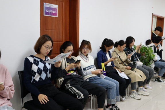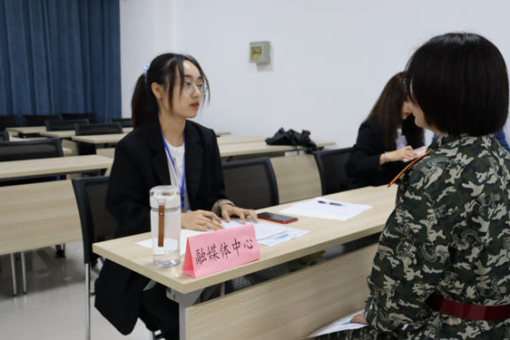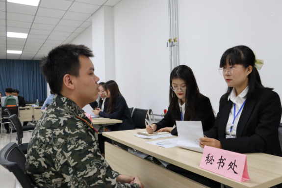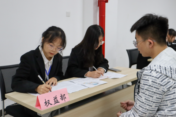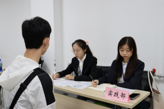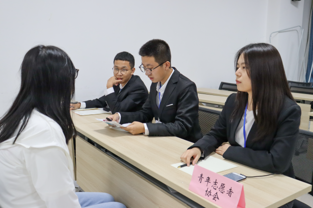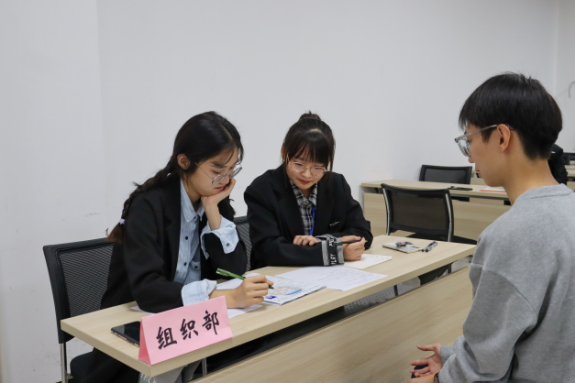 面试开始前,同学们提前来到大会议室外,认真地准备着面试问题,耐心候场。面试开始后,同学们有序入场,选择心仪的部门进行面试。面对学长学姐们的提问,同学们从容作答,自信应对,充分发挥临场应变能力,表达对期冀部门的渴望与热忱。各部门的负责人也认真地对同学们的各方面能力进行考核,同时态度亲切,让同学们在严肃的环境中愉快进行面试。