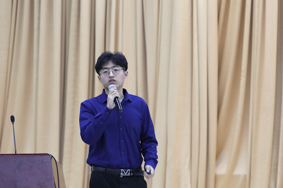 李沛峰同学演讲的主题是《群体效应下的“社死”反思,再论民胞物与》,以热词“社死”为切入点,引起人们对“网络暴力”的反思,并结合社会热点及学术知识,提出了社会性死亡谁来救济这一疑问,向观众传递了“民胞物与”的精神。