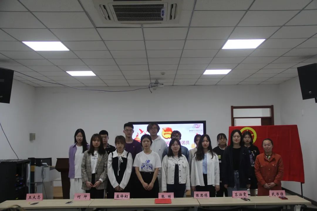 宣誓后,为每位新入团团员颁发了团员证及团徽,象征着这8名同学正式成为一名光荣的共青团员。