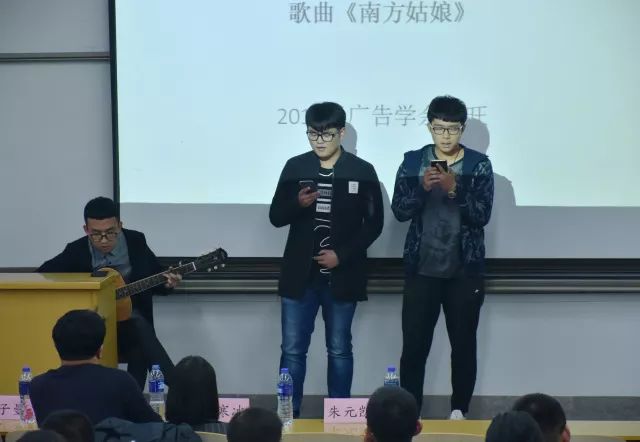 正在此时,画风突转,接连三首歌曲将见面会气氛推向高潮。新闻专业石校于同学的《枕上书》,广告专业余正旺、曹升照同学的《南方姑娘》,以及毋伟老师的一首搞笑风《爱拼才会赢》为见面会增添了乐趣。