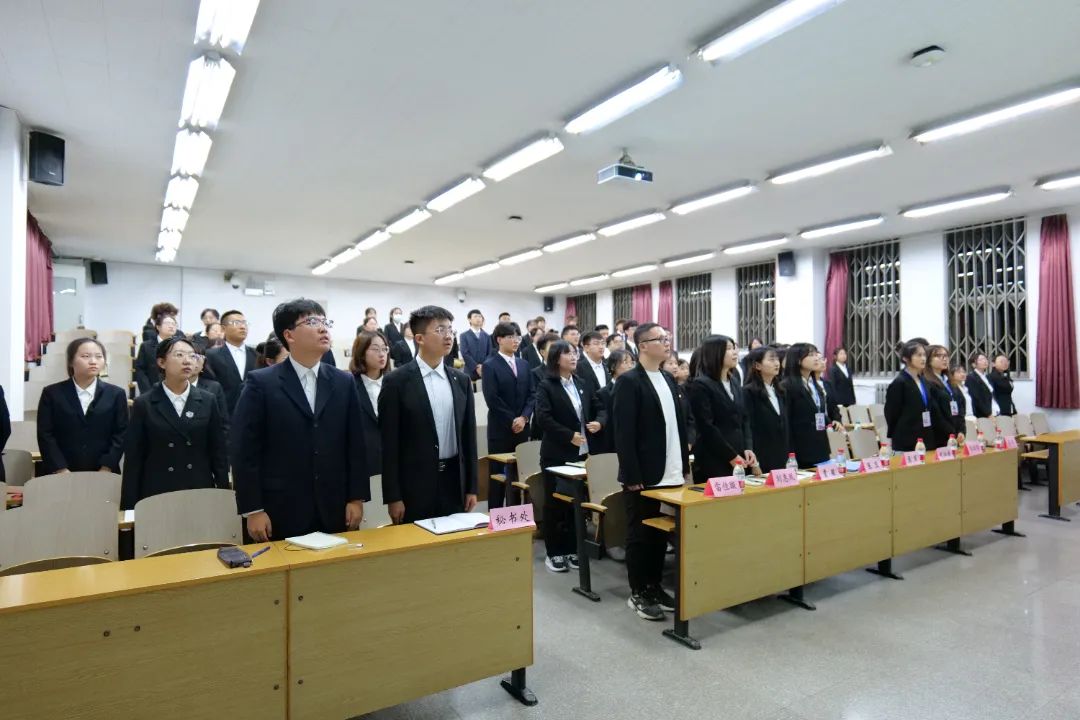 会议第一项,全体起立,共同奏唱共青团团歌《光荣啊,中国共青团》,歌声慷慨激昂的旋律,彰显了EMC易倍学子的蓬勃朝气。
