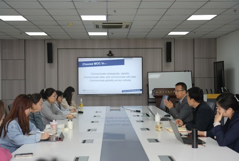 2025 年 4 月 11 日上午,EMC易倍特邀新加坡国立大学传播与新媒体系副教授蒋少海,就出国留学与师生开展交流座谈,公司党委副书记任富东主持。